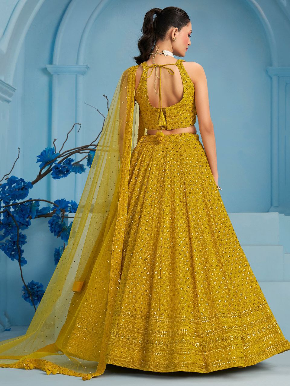 Haldi Function Special Yellow Color Embroidery Sequin Work Lehenga Choli