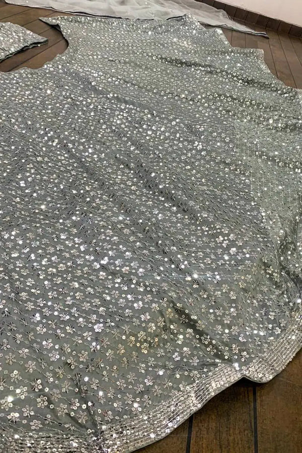 Most Trending Grey Color Sequin Work Party Wear Lehenga Choli