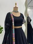 Wedding Special Black Color Designer Lehenga With Embroidery Dupatta