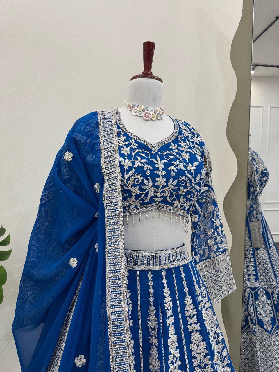 Wedding Special Royal Blue Color Embroidery Sequin Lehenga Choli